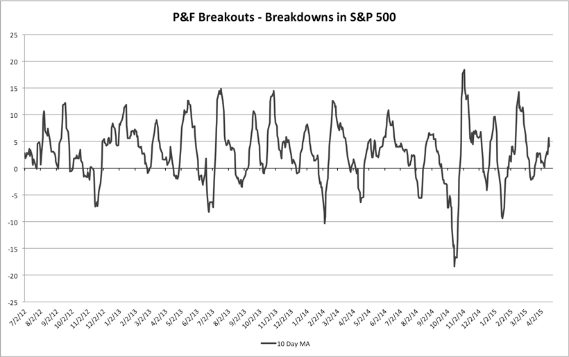 S&P 500 Cumulative P&F Breakouts - Breakdowns