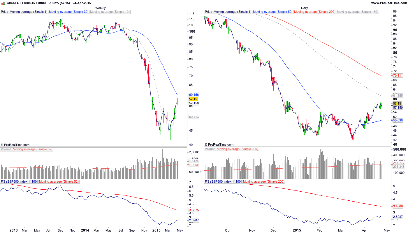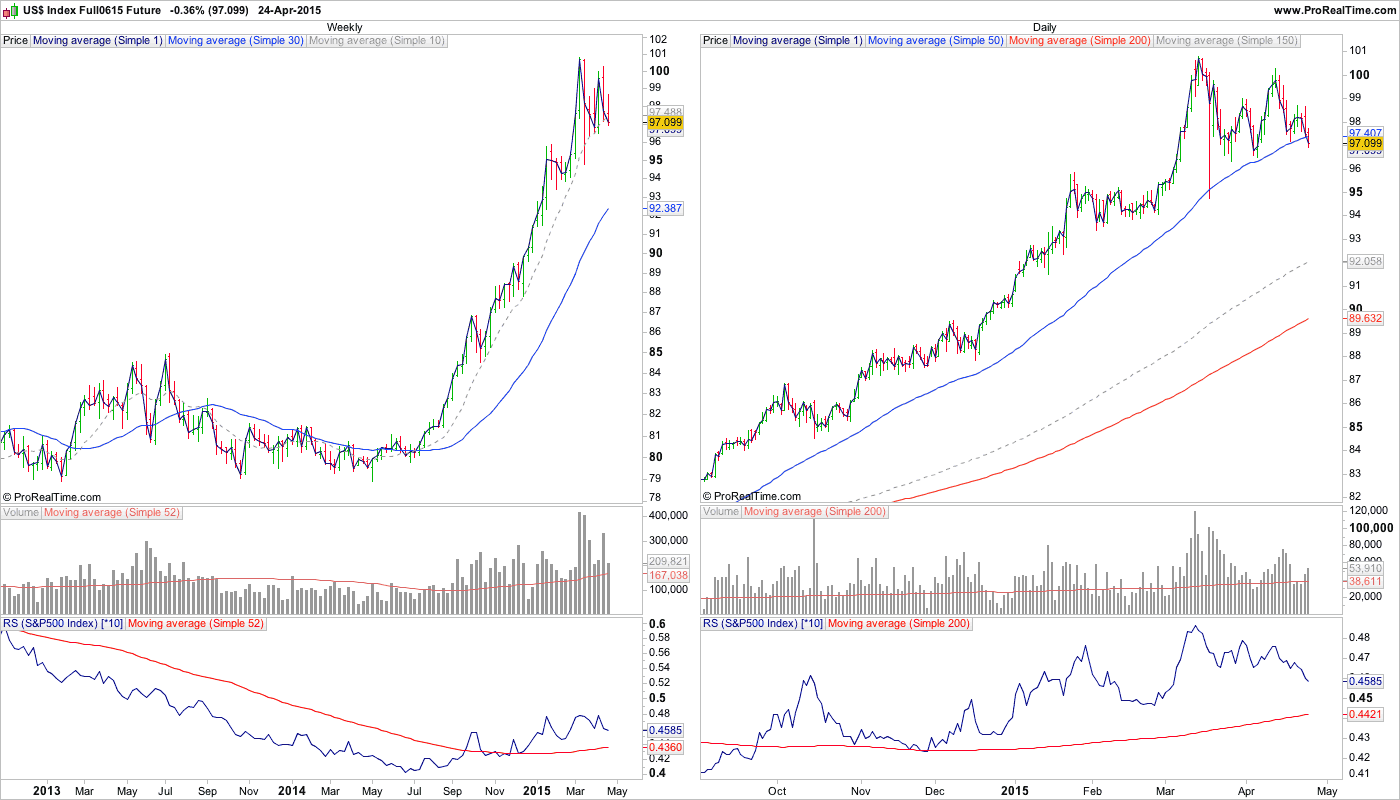 The Nasdaq weekly cumulative advance - decline line is making is first higher high in over a year, breaking the 2014 downtrend pattern of lower highs, and lower lows, as so far in 2015 we've had a higher low and now a higher high, and it's moved back above it's 50 week MA.