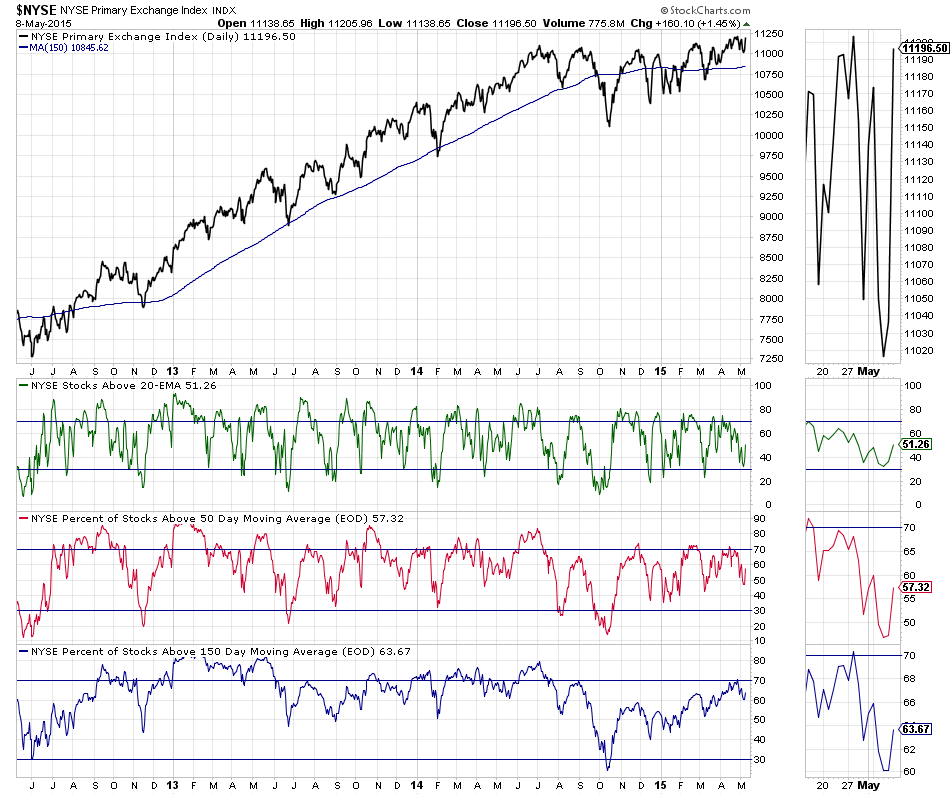 Fate does not always let you fix the tuition fee. She delivers the educational wallop and presents her own bill - Reminiscences of a Stock Operator. NYSE Market Breadth UpdateAttached is the NYSE Bullish Percent Index and the NYSE long, medium and short term moving average breadth charts.