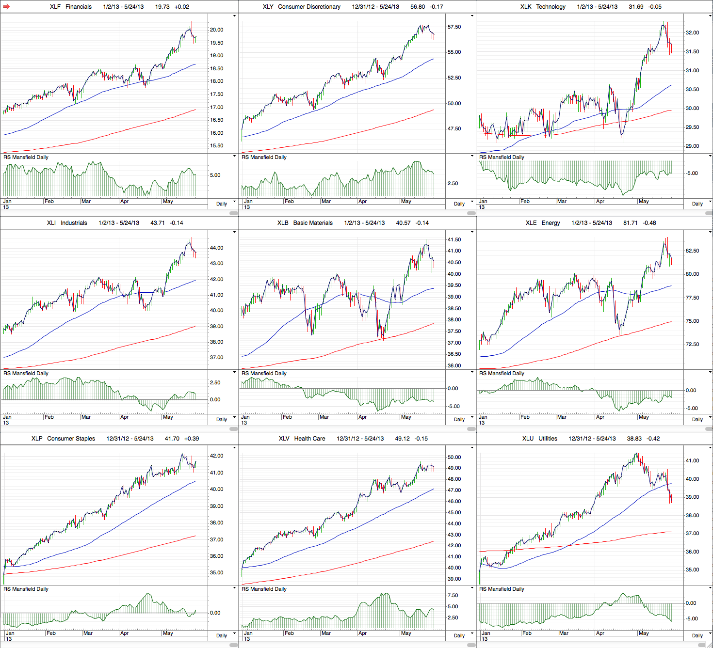Attached are the updated US Industry Sector Charts and relative performance table.