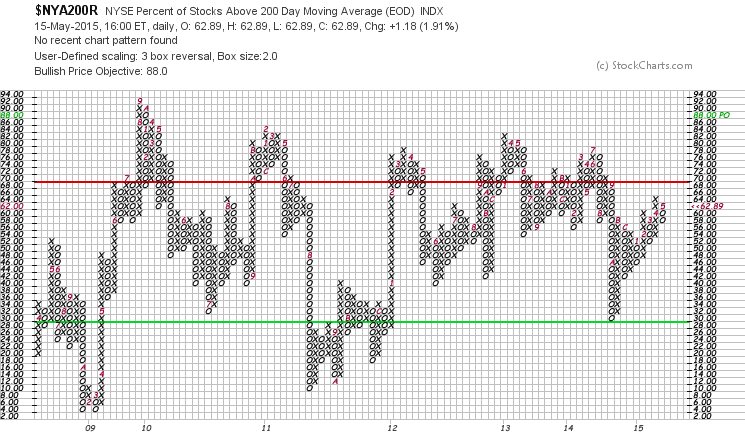 NYSE Percentage of Stocks above their 200 Day, 150 Day and 50 Day Moving Averages P&F charts
