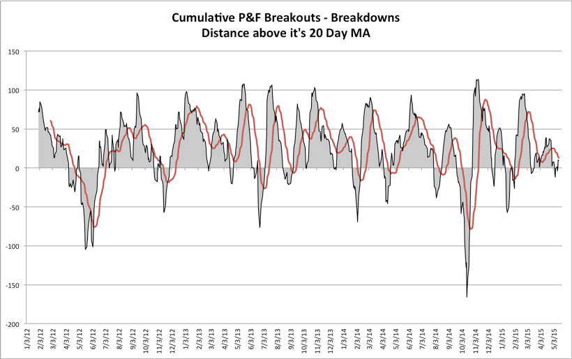 Attached is the exclusive S&P 500 Cumulative P&F Breakouts - Breakdowns charts