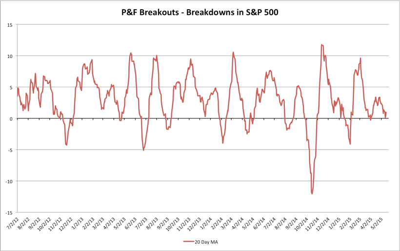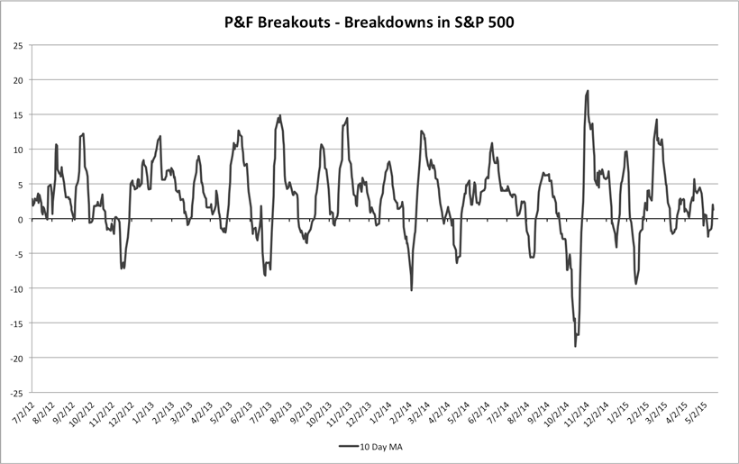 S&P 500 Cumulative P&F Breakouts - Breakdowns