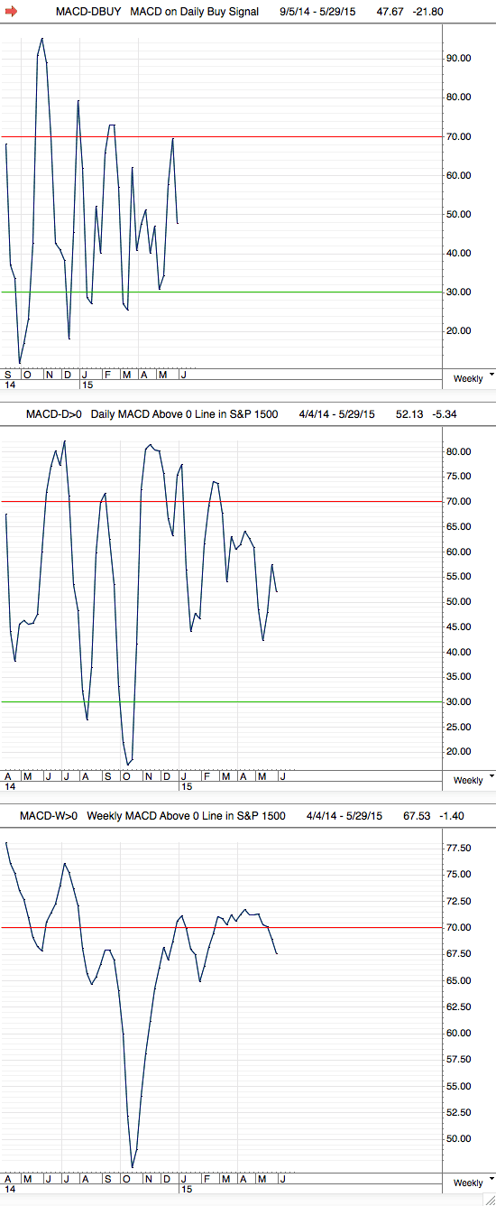 Fate does not always let you fix the tuition fee. She delivers the educational wallop and presents her own bill - Reminiscences of a Stock Operator. S&P 1500 MACD Breadth ChartsAttached is the updated MACD breadth measures, which are: