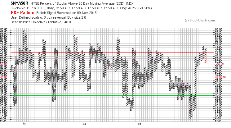 NYSE Percentage of Stocks above their 50 Day Moving Averages status change