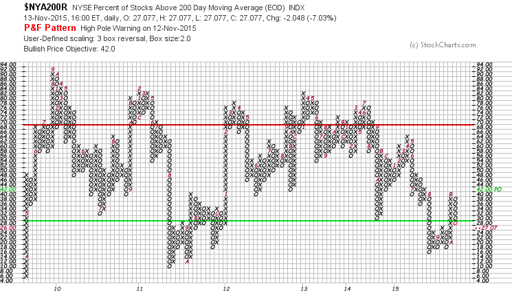 NYSE Percentage of Stocks above their 200 Day, 150 Day and 50 Day Moving Averages P&F charts