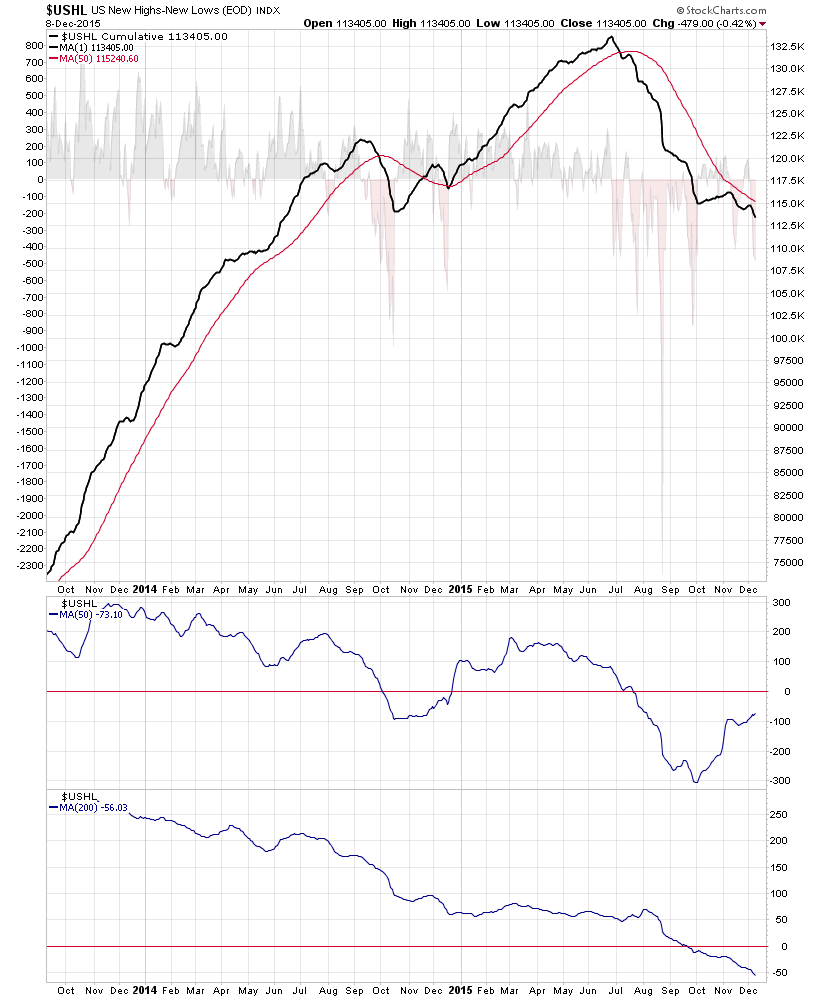 Note: new 52 week lows and large divergence with price action in the markets over the last few months.