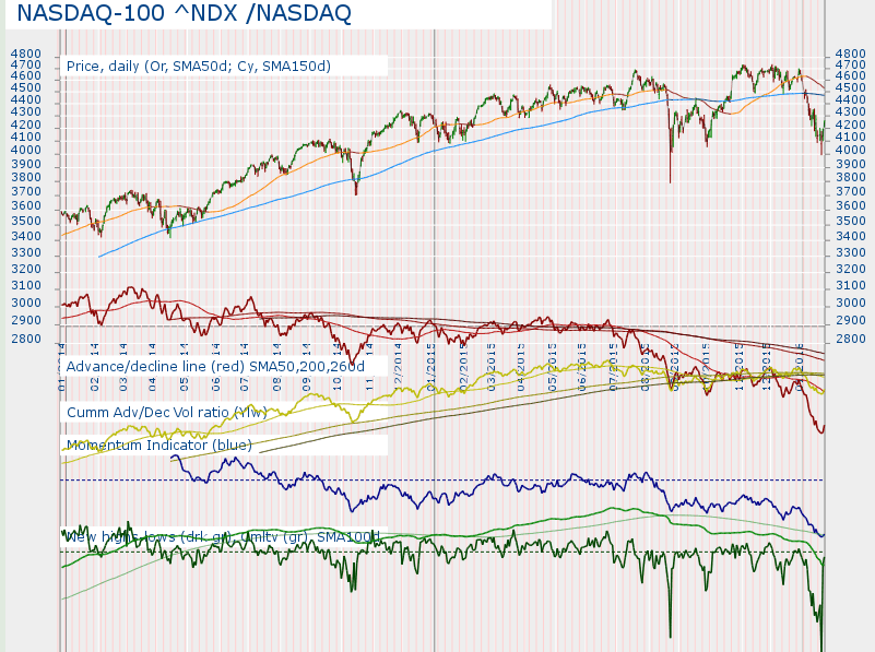 Nasdaq Percentage of Stocks above their 200 Day, 150 Day and 50 Day Moving Averages line charts