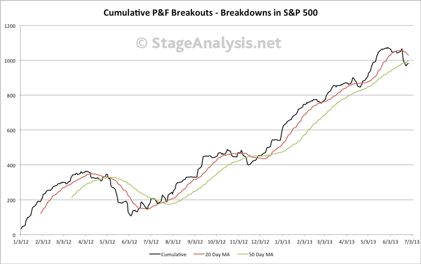 S&P 500 Cumulative P&F Breakouts - Breakdowns