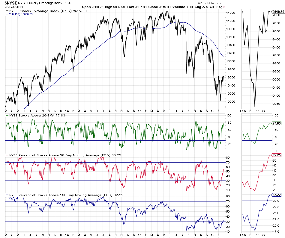 NYSE Percentage of Stocks above their 200 Day, 150 Day and 50 Day Moving Averages line charts