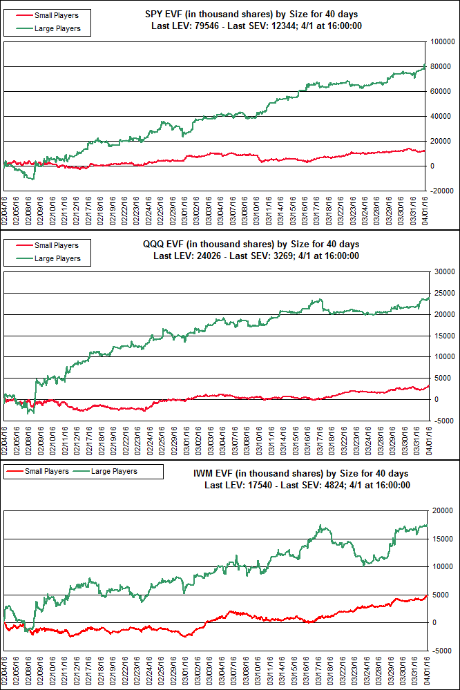 Large Player volume continues to increase since early February in all three major US indexes.