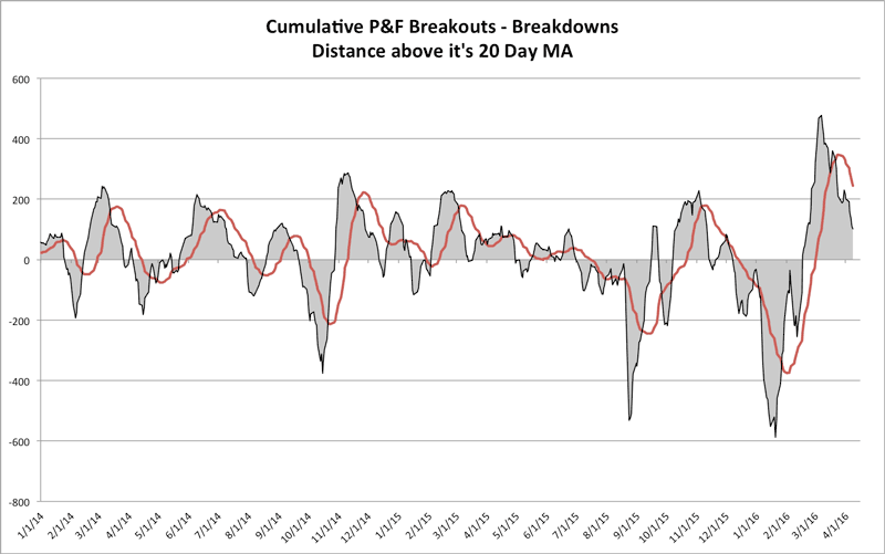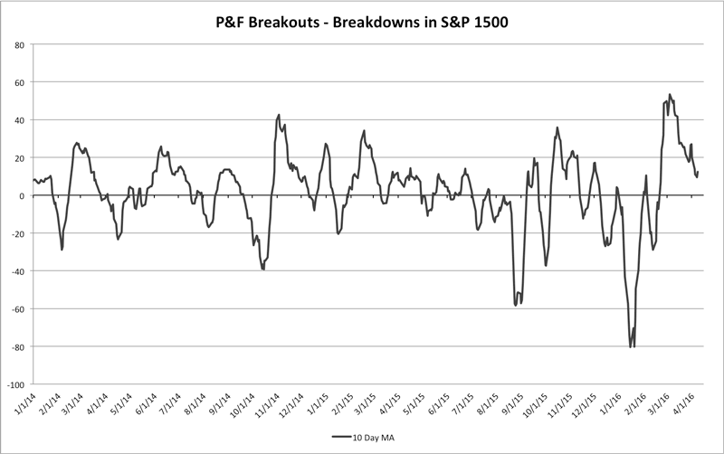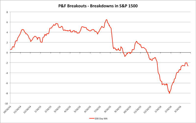 S&P 1500 Cumulative P&F Breakouts - Breakdowns charts