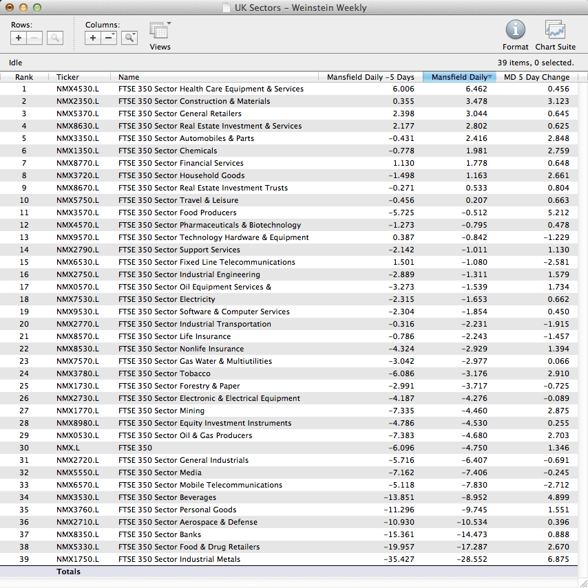 FTSE 350 Sectors - Ordered by Overall RS Score