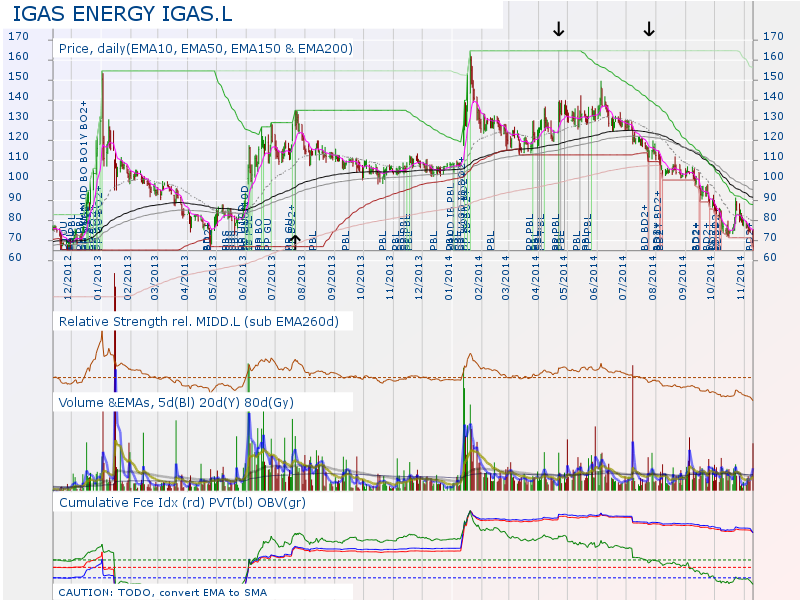 pcabc Premium Member Posts: 2,829 Threads: 1 Joined: Oct 2013 Reputation: 481 #859 2014-11-10, 11:46 PM RE: UK Stocks - Watchlist and Discussion (Premium) Some UK shorts. I may have to de-clutter my charts a little so bear with me. IGAS.L, QPP.L & ADM.L: Find Reply