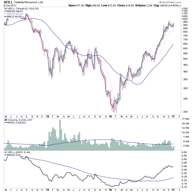 Fate does not always let you fix the tuition fee. She delivers the educational wallop and presents her own bill - Reminiscences of a Stock Operator. RE: UK Stocks - Watchlist and DiscussionRE: UK Stocks - Watchlist and Discussion(2017-01-08, 01:13 AM)isatrader Wrote: Copper is attempting to rebound from it's first major pullback in Stage 2A, and so I thought I'd have a look at the sector in the UK specifically, and was pleasantly surprised, as I hadn't looked since I highlighted the Stage 2A breakout in Copper back in early November, and it's showing some very strong Stage 2 runs, and what I really like personally is the monthly charts, as they highlight just how far copper stocks fell during their multi-year Stage 4 declines, and hence there's a lot of potential still imo as they have now recovered back above their 30 month MAs.The charts look good but I am not seeing a build up in volume on these charts? RE: UK Stocks - Watchlist and Discussion(2017-01-09, 02:39 PM)Smellypunks Wrote: The charts look good but I am not seeing a build up in volume on these charts? Volume in UK stocks generally isn't very good, so you'll rarely see the types of volume that method looks for like you do in US small and mid caps, which is why when I do see it in a UK stock like SOU.L last year, I tend to go bigger position than normal.