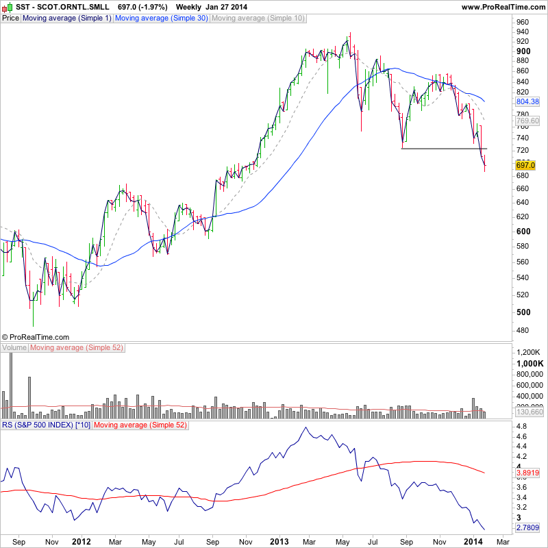(2014-01-27, 09:07 PM)isatrader Wrote: With the markets getting more volatile I thought I'd start to look for some Stage 4A breakdowns and Stage 4 continuation moves lower for the watchlist as well.