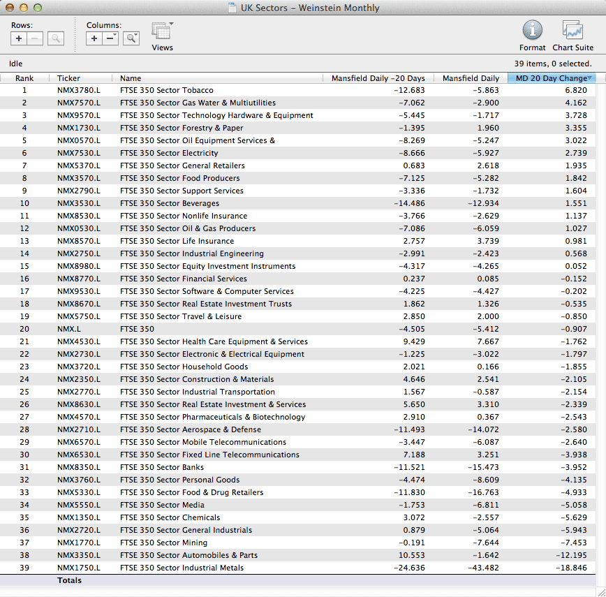 FTSE 350 Sectors - Ordered by Overall RS Score