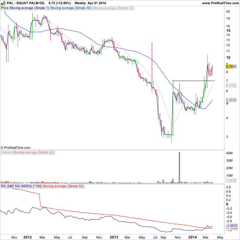 The ProTA Gold software can only show the Daily values in the tables, and I use the 200 day MA setting on my Mansfield Daily charts, which is slightly faster than the 52 week setting. So see attached same chart setting in prorealtime, which will have a minor variance due to different data providers. But I've circled the reading on the daily chart on the right, so you can see.