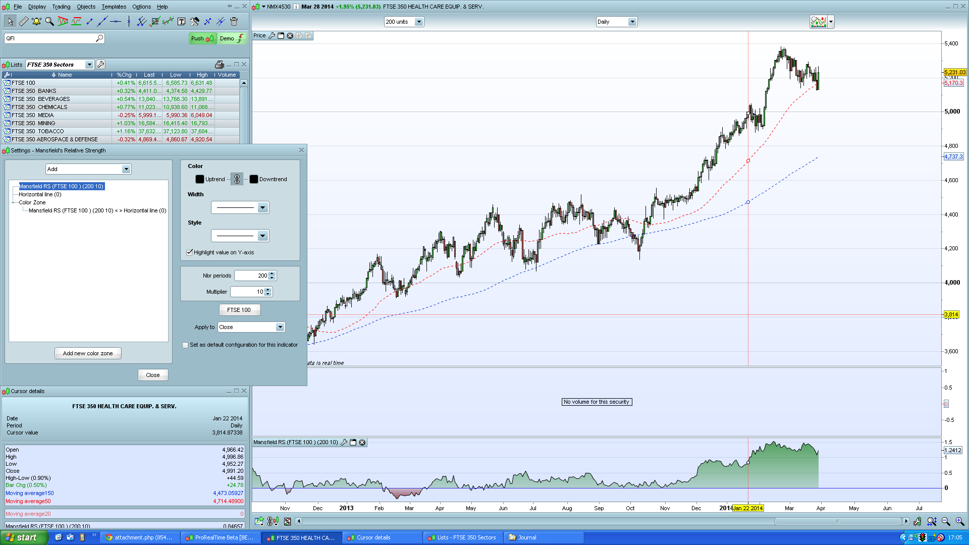 In my daily chart, where I have the Mansfield RS indicator on the daily, the Mansfield score I am showing is different to what your tables are showing. Maybe it is something simple for it to be wrong. In your Mansfield overall score, you have the column headed, Mansfield daily, but when I view the image containing the scores you have the header at the top called 'UK Sectors - Weinstein Weekly'. Are these tables based against the Mansfield scores against a daily chart?