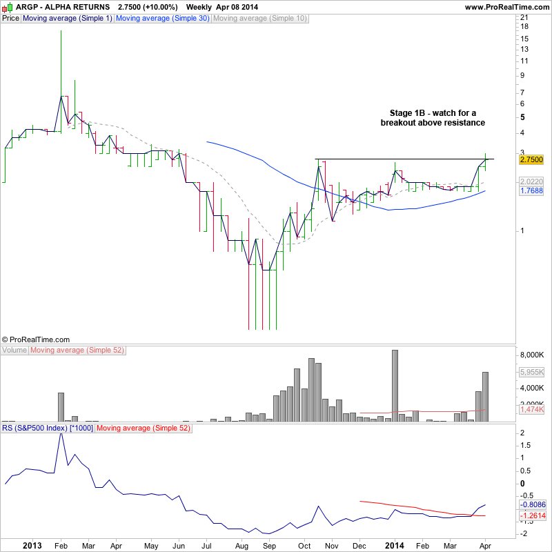 Today's scans on the long side threw up a few Stage 1 stocks for the watchlist - OEX.L, CRES.L, WORK.L, ARGP.L, BGBL.L