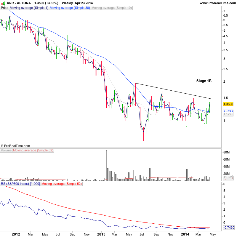 (2014-04-24, 11:07 PM)Tryst Wrote: Isatrader, with MOIL, what is your staged analysis take on this one? Is it still in stage 1 until it sticks a weekly landing above your 2nd resistance line? So a close above this resistance would be bullish tomorrow...as it starts a stage 2A?