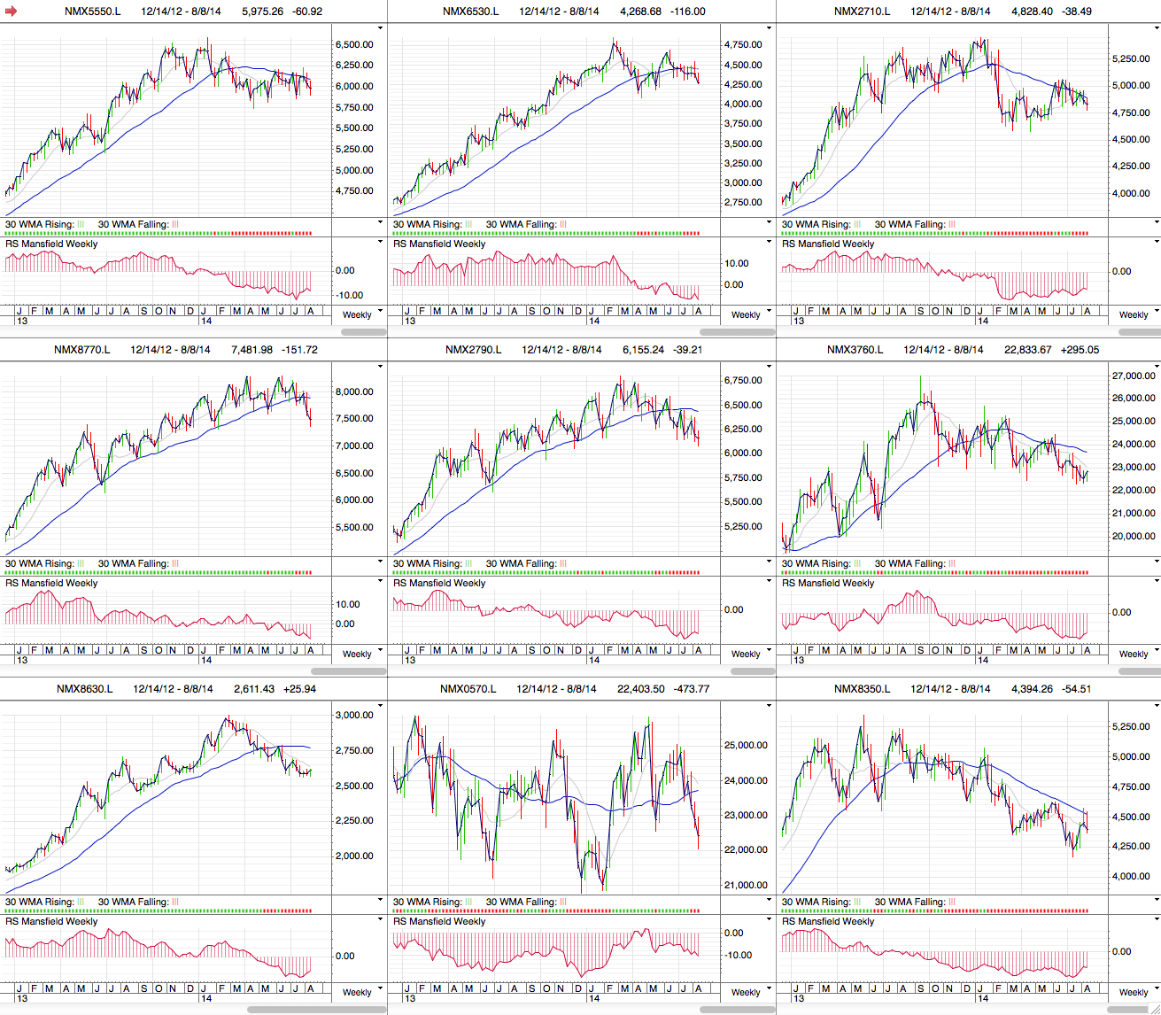 Attached is the weekly UK FTSE 350 Sector charts in order of relative strength based on the overall Mansfield RS that I posted in the previous post.