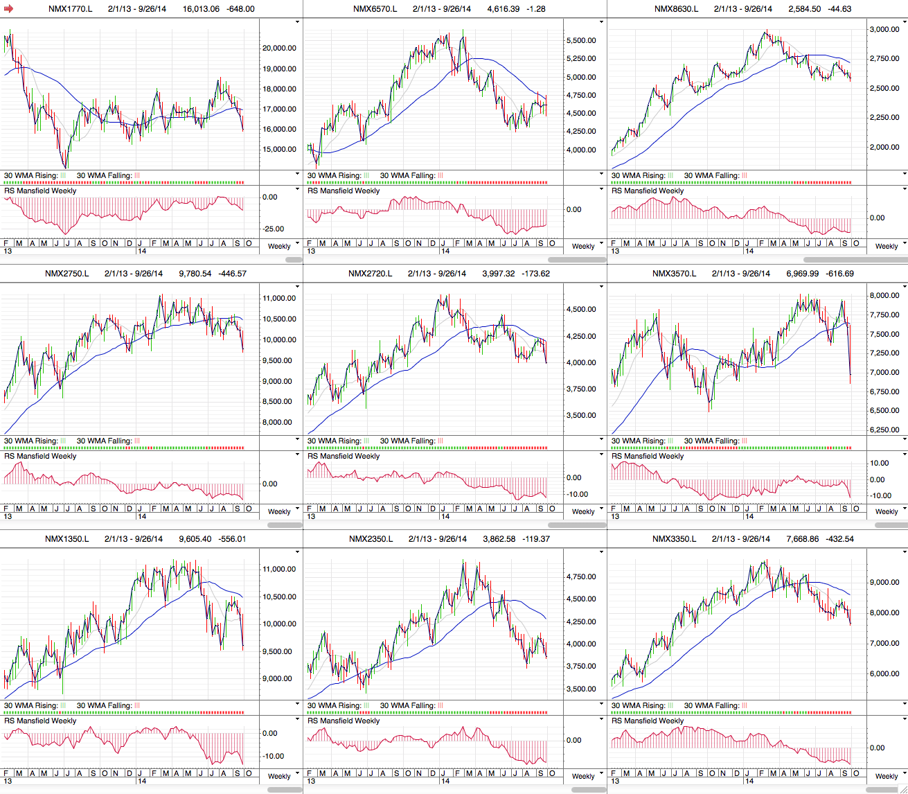 The updated UK FTSE 350 Sectors Relative Performance tables are in the free UK watchlist thread here: http://stageanalysis.net/forum/showthrea...47#pid5547 and I've also included the up to date weekly charts of all the sectors.