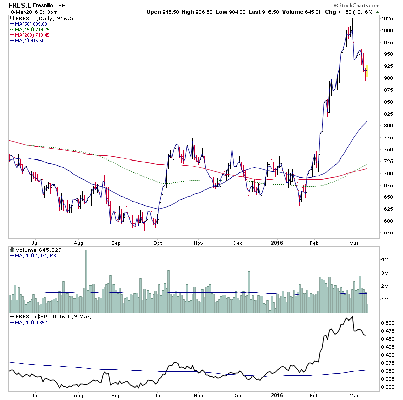 I'm also looking at FRES.L, along with CEY.L and POLY.L, as the sector leaders look to start to make a pull back. They have risen very nicely so the pull back would have to make some distance to go back to where they have broken out.