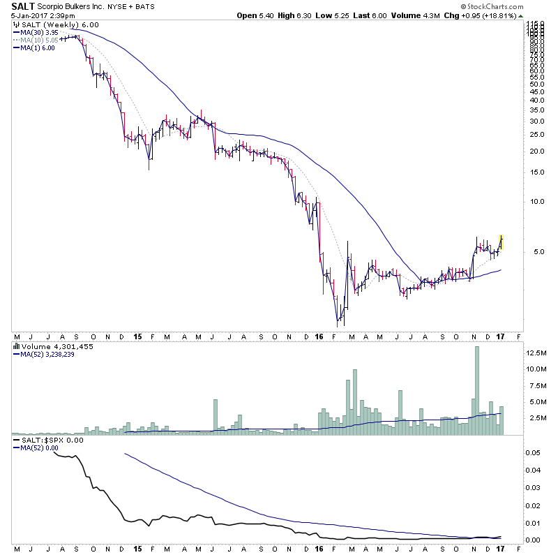 Fate does not always let you fix the tuition fee. She delivers the educational wallop and presents her own bill - Reminiscences of a Stock Operator. Marine Transportation sector in Stage 1BI'm going to try and spend some time going through the industry performance lists this weekend, as being the start of the new year I like to look for early themes and especially sector recovery plays. I haven't had time to do the full 100+ sectors, but from a brief look through some of the top performing sectors this week I've noticed Marine Transportation has a number of stocks attempting to complete decent sized Stage 1 bases, although the Stage 4 declines were very heavy in most, and so they will still likely have a lot of resistance and so could still be too early. But the sector is interesting me, and so I'm going to do some more research as i'm looking for a sector with potential, and as you can see from the SEA ETF that covers the sector, it's moving inot Stage 1B as a sector, and I need to drill down into the individual stocks some more to look for the leaders.