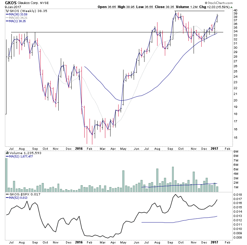 A few for the US long watchlist - DDD (Stage 1B, potential for Stage 2A breakout, strong relative volume today), CUDA (potential for Stage 2 continuation attempt), GKOS (Stage 2, potential for continuation move to new highs)