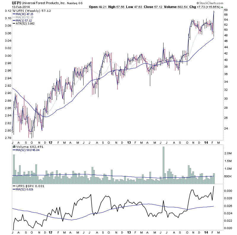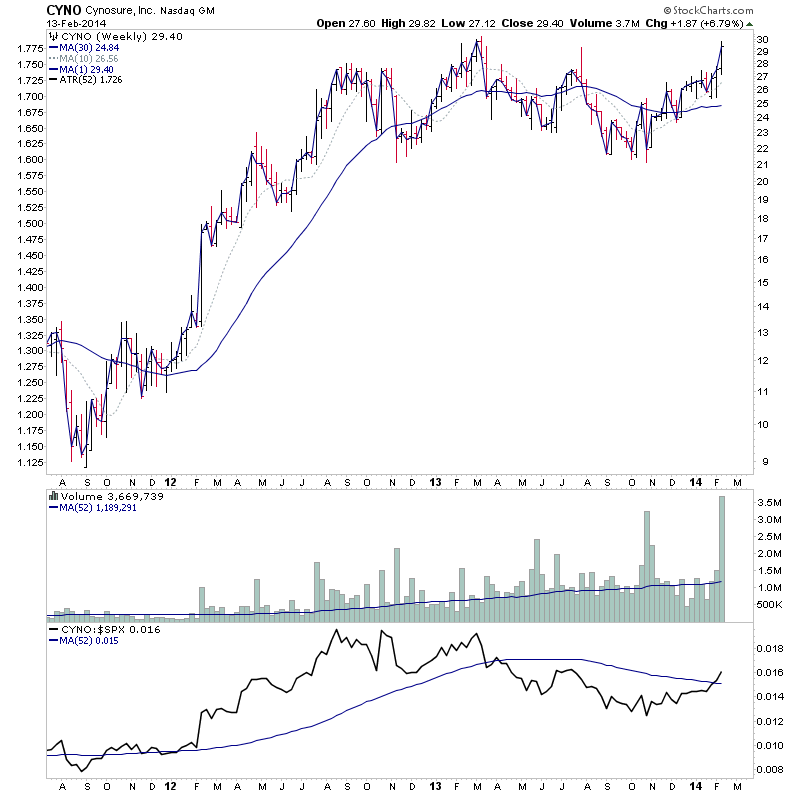 CTCH - Early in Stage 2 testing the 2013 highs. However, note the monthly chart which I've also attached which shows potential for a monthly Stage 2A breakout to multi year highs with increasing relative volume and positive RS.