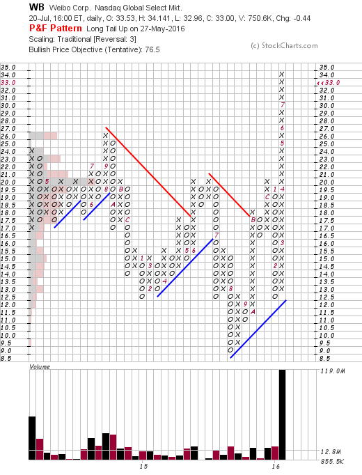 When I talk about looking for the new leaders in a bull market. WB is the kind of price action that I am talking about imo. Think this one is very early in it's Stage 2 advance, and will be looking for a suitable pullback for a potential entry.