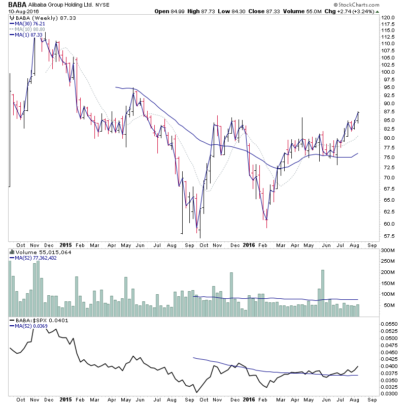 A few Stage 2A breakout attempts - BABA, BUFF (after hours Stage 2A breakout attempt, not shown on chart), and another 3D printer stock in Stage 1 - DDD