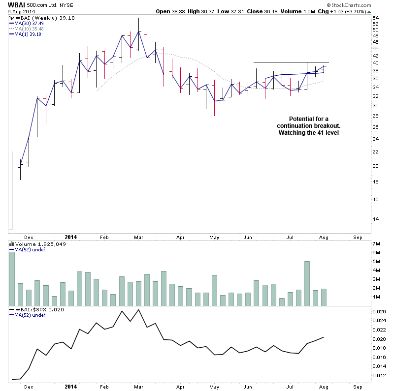 WBAI - Potential for a continuation breakout. Watching the 41 level.