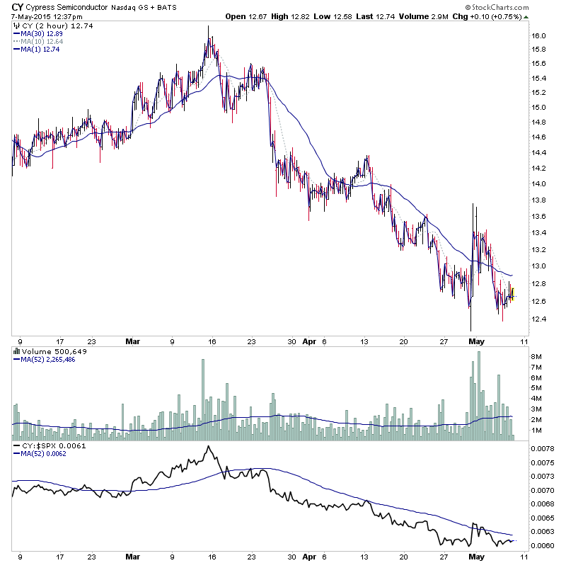 CY is below the 30 week MA currently and 50 day MA. So personally I'd be wary until it can get back above those. Or make a Stage 2A breakout on the intraday 2 hour chart, which would be a close above the 13.8 area imo. See attached