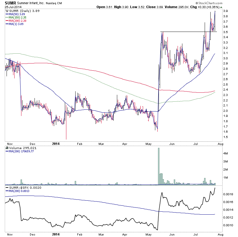 SUMR was first highlighted back in May in the US stocks thread in the Elite board when it broke out on strong volume into early Stage 1A. Since then it's consolidated above it's 30 week MA and formed a high Stage 1 base, and last Monday 21st I highlighted it again on the elite board as it was making a breakout attempt into Stage 2A with strong relative volume.