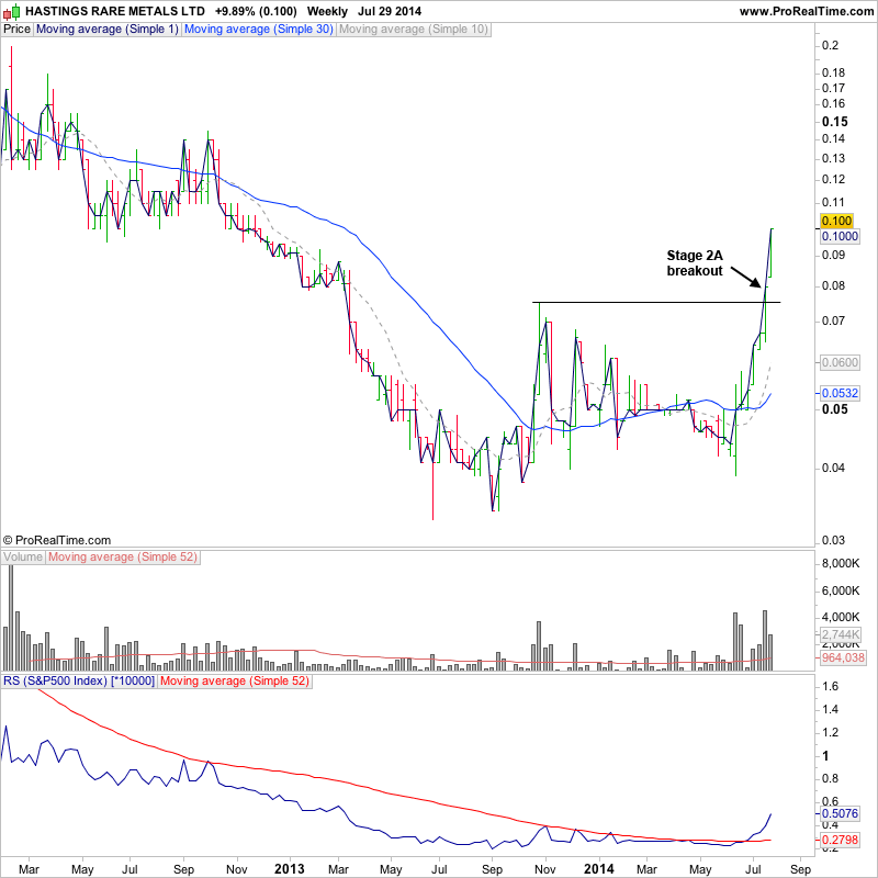 Just to highlight that there are other markets in the world where Stage Analysis works equally well. Here's some stocks of interest in the Australian market in various phases.