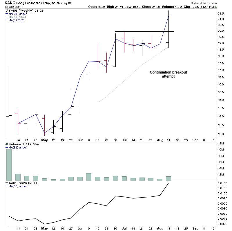 LEJU - another recent IPO that's formed and broken above it's primary base. It's made a close above the IPO high three weeks back, and is now attempting to make a further continuation.