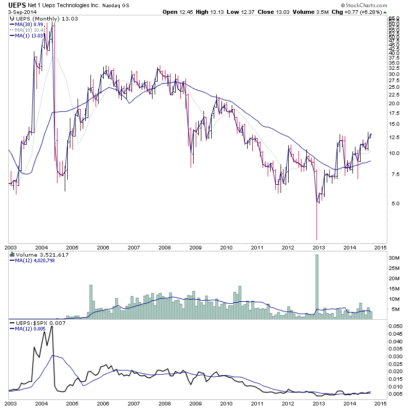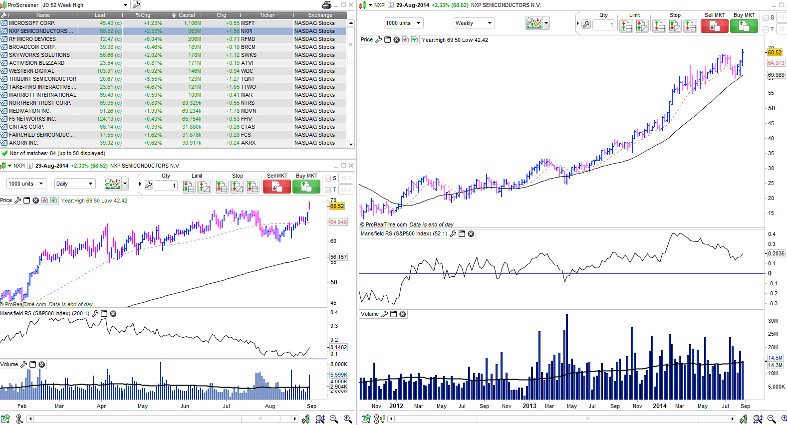 2. Weekly - 10 week MA rising, price above strong 30 week MA,volume contracted on price pull back.