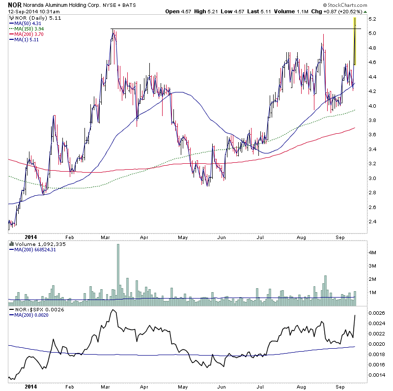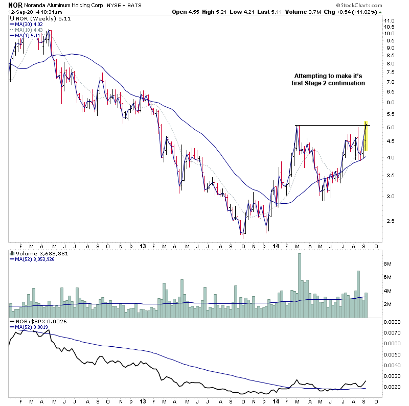 One for the US watchlist today attempting to make it's first Stage 2 continuation breakout is NOR. Attached is the charts.