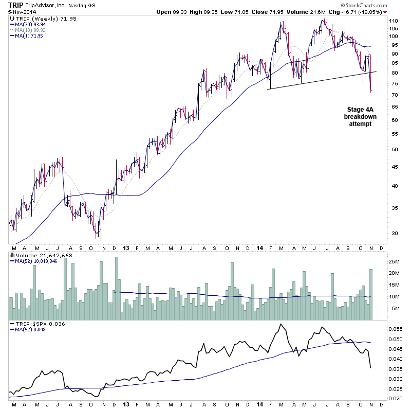 There was 39 P&F breakouts and 10 P&F breakdowns today in the S&P 1500. Here's a few of the breakdown charts for the watchlist - TRIP, KELYA, WYNN