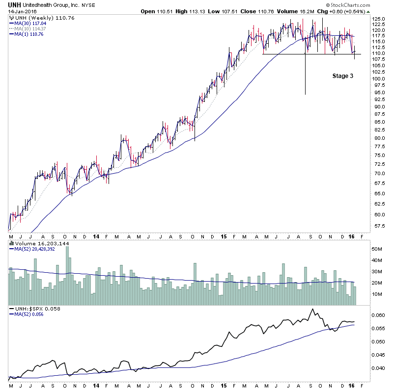 They've been off my radar for a while too, as Gold has been in Stage 4 for 3+ years now, and topped in 2011. So the fact that some of the gold miners are turning around, or just forming massive bases and not falling anymore is interesting. Something to keep an eye on at least, as stocks with big bases is what I'll be looking for when the market Stage 4 comes to an end, and you won't find those in any sectors only just breaking down into Stage 4 now, as I mean 1+ year bases. So they'll be in the most unloved sectors of the last few years where all the weak hands have already left, and so will sell off a lot less during a broad market decline and form their Stage 1 bases. 2016 is going to be an interesting year.