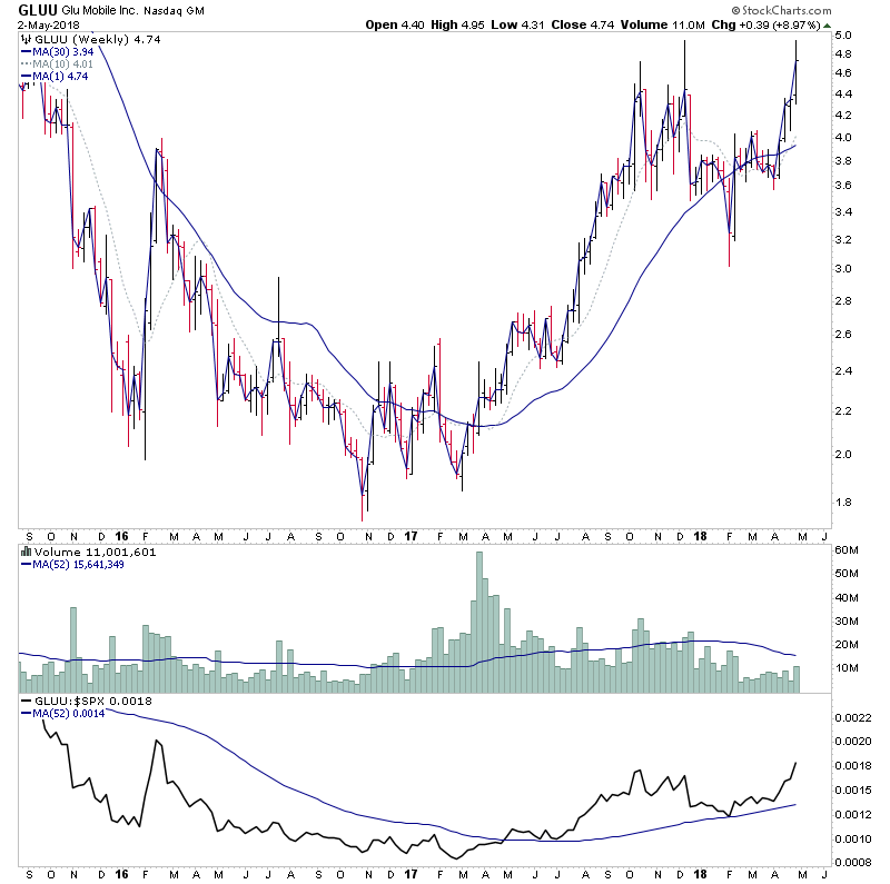 HEAR has had an extreme volume surge for three weeks that has taken it through it's near term resistance zone with a multi digit move. So it's one to watch for what happens on it's first significant pullback once this initial Stage 2A high volume thrust has ended. Watch for a contraction in volume when the pullback occurs, as that will guide as to whether it's suitable or not to consider.