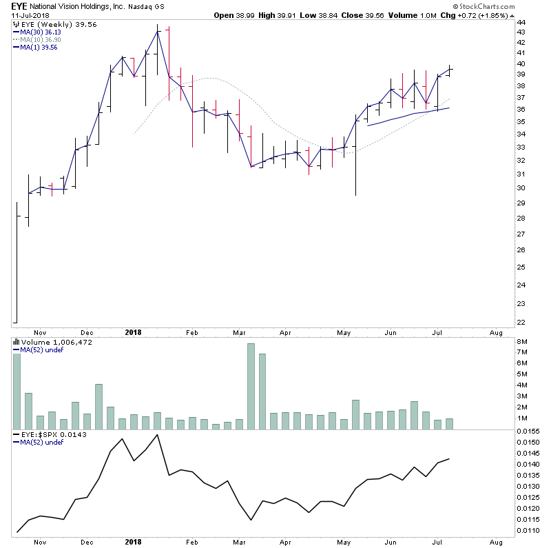 Lots of stocks appearing in the scans in the last three days, but the quality isn't there at the moment, so not much for the watchlist other than ELVT, which broke out of its IPO base last week on average volume and has continued on this week on higher volume. But obviously a long way from an entry point, so one for the watchlist.