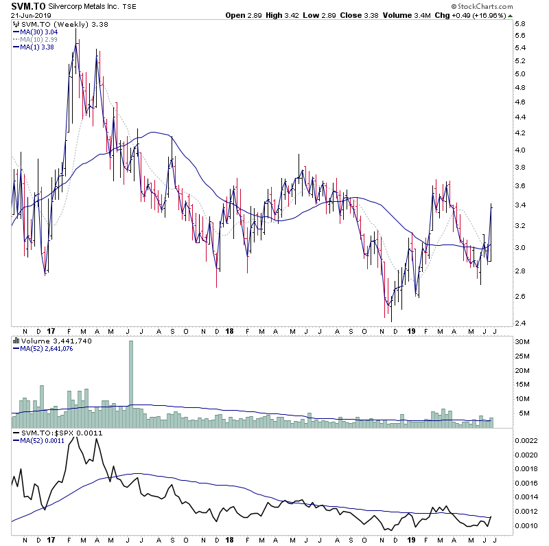 I did a scan of the US and Canadian gold mining sectors with a price greater than 0.5 and excluding the over the counter markets. Of the 174 results, I've whittled it down to following in terms of stocks that look interesting from a Stage Analysis perspective imo. I'm not saying any are a buy or not right now, as not many meet any sort of risk parameters that I follow, so I'll leave it to you to do your own due diligence. So it's just that these are showing the best characteristics of the all the gold and silver charts that I've looked over tonight.