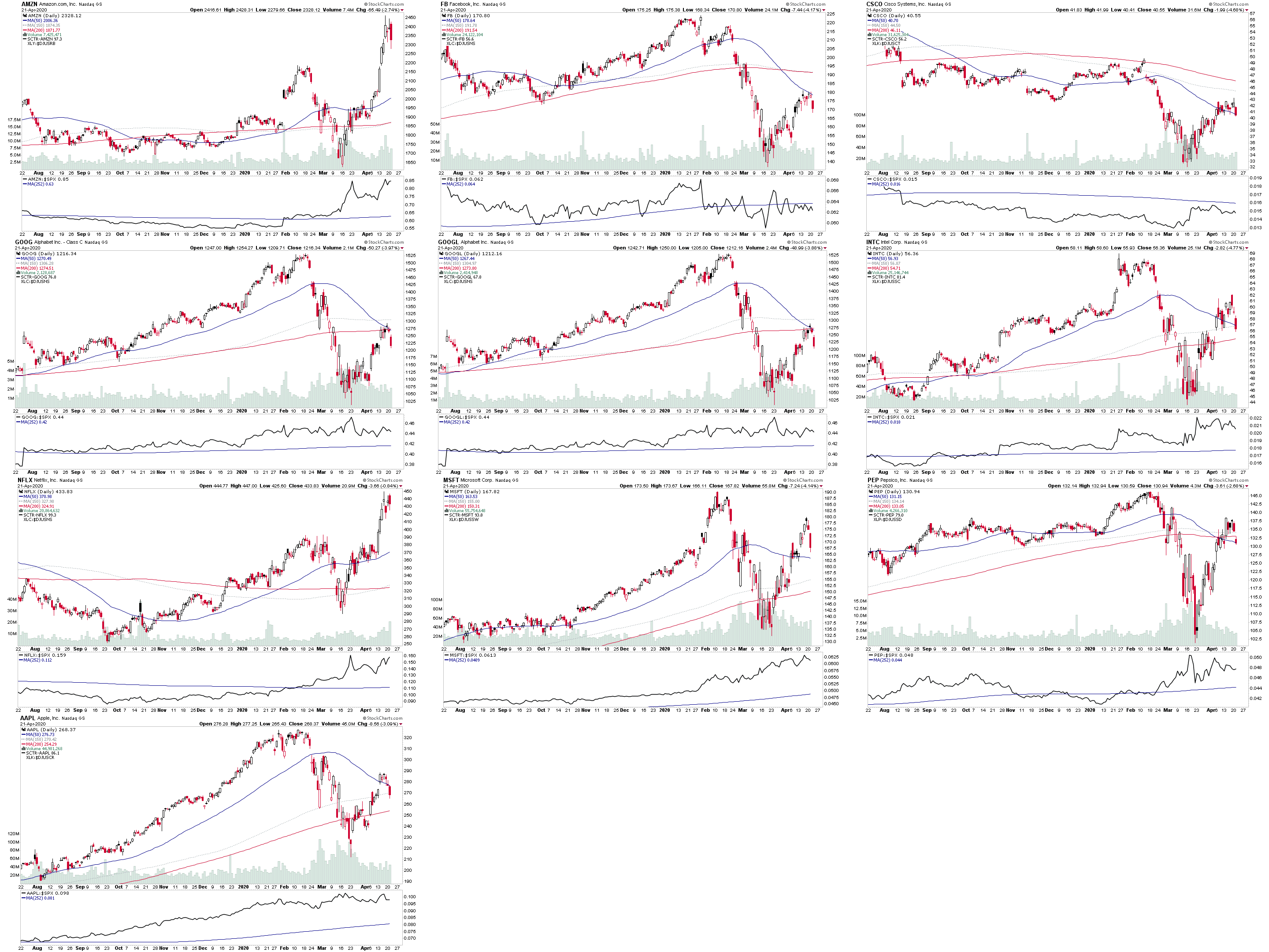 Potential swing high today. But needs more conformation still. These 10 stocks make up 53% of the Nasdaq 100 and so have a outsized effect on what happens in the index.