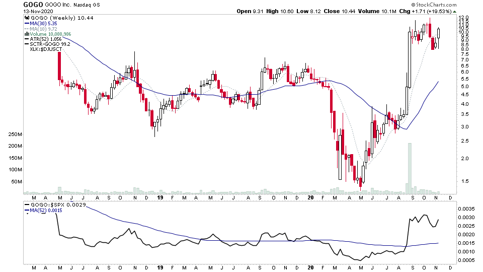 BILI is also very interesting as it has earnings this week, and moved over 300% from its lows, and has had a very contained -25% pullback range that has developed over the last four months above the rising 30 week MA. Relative strength remains near the highs and volume has shown good signs the last few weeks as it's held the tests of the 10 week MA.
