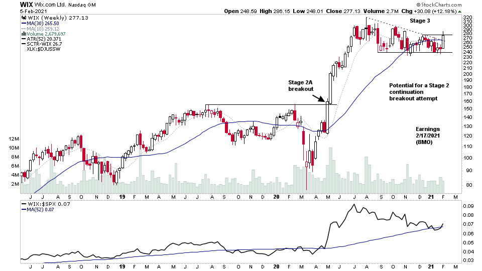 $WIX Potential for a Stage 2 continuation breakout attempt. Earnings 2/17/2021 (BMO)
