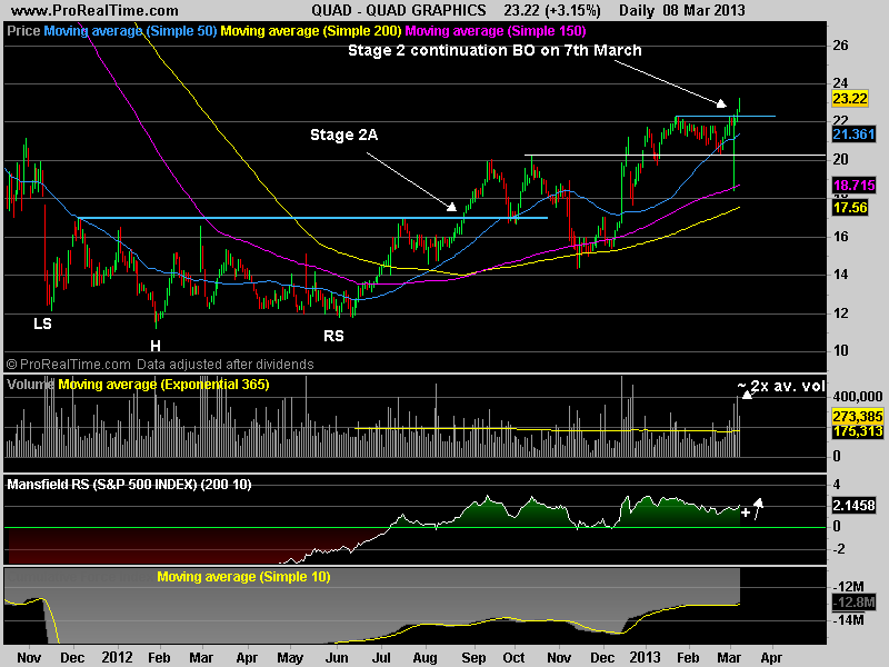 So in my opinion, for trader picks you should be looking for consolidations in a strong Stage 2 stock, that last a few months or more, that continue to show good relative strength and that volume continues to build, as these will give you the best chances of a strong continuation move.