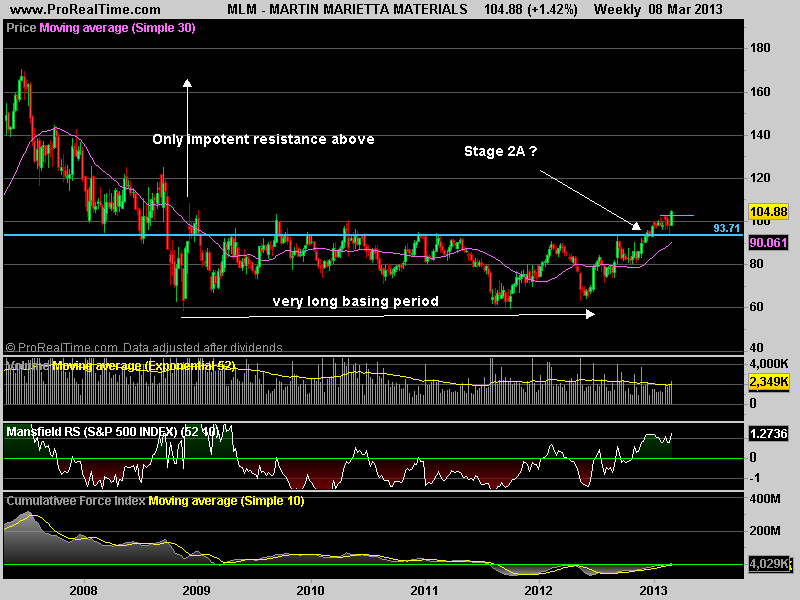Remember that's the ideal chart. You'll get lots of little consolidations in Stage 2 run that only last a few weeks, but the "ideal" trader entry is after a more sustained consolidation of a few months or more, as this gives a bigger base to spring from, as long as the 30 week MA is still rising strongly.